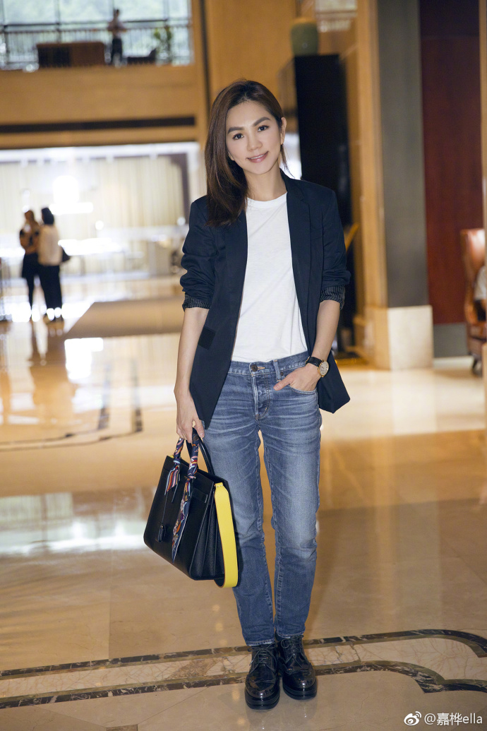 辣妈Ella休闲西装搭白T 干练十足满满职业范儿